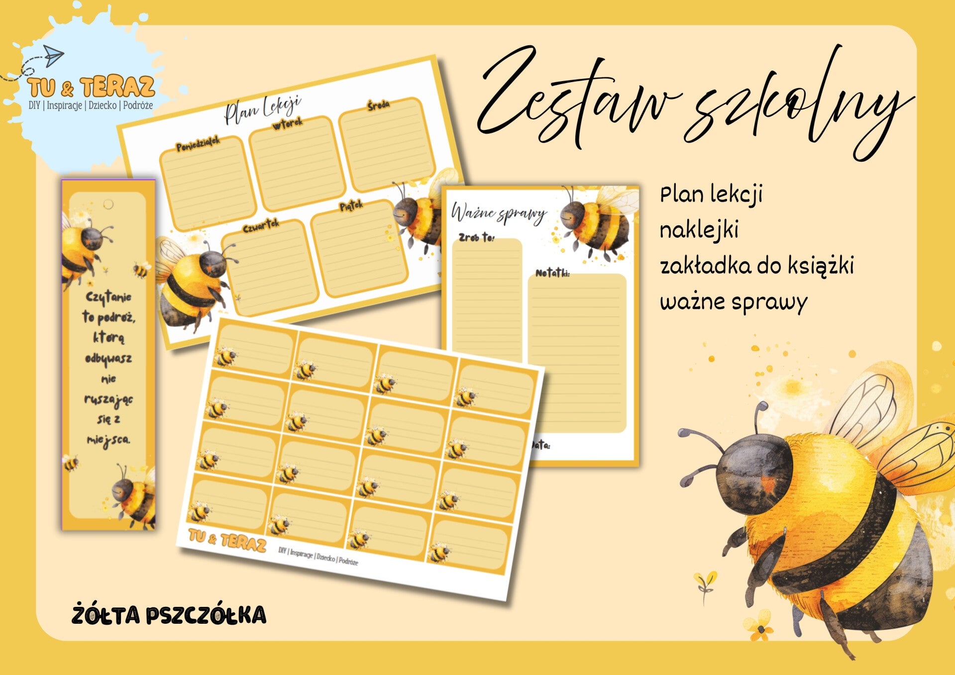 Zestaw szkolny – plan lekcji, naklejki, zakładka i ważne rzeczy do druku